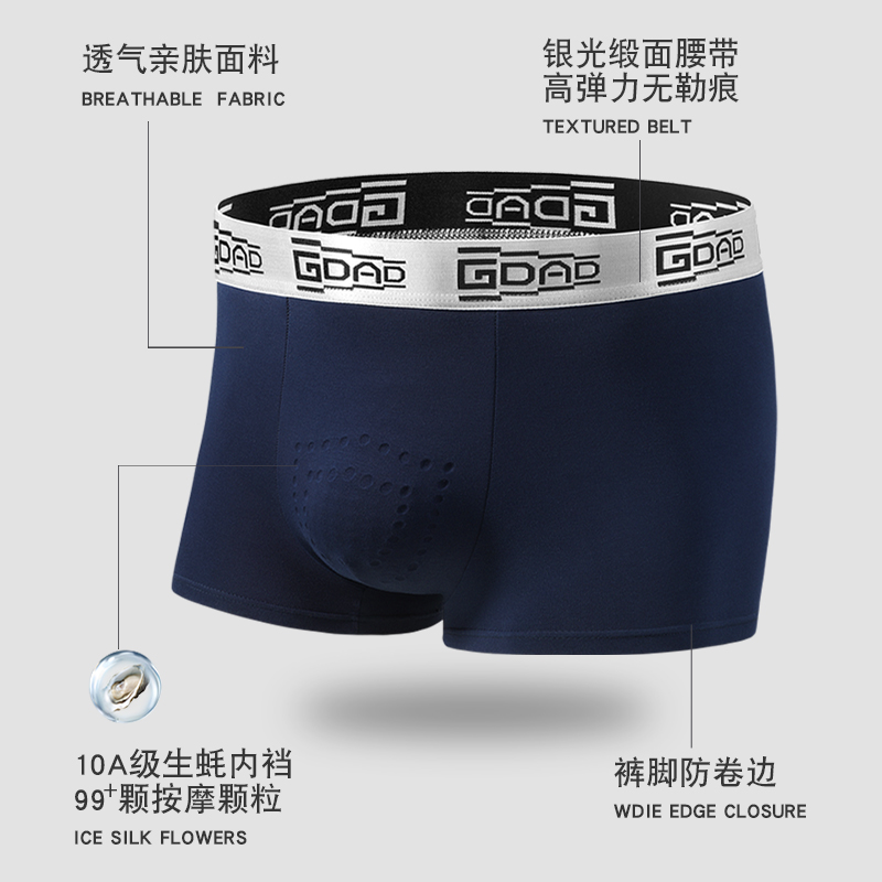 平角内裤 透气舒适男款 轻奢生蚝养护抑菌按摩颗粒内裤 洋奢男士