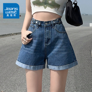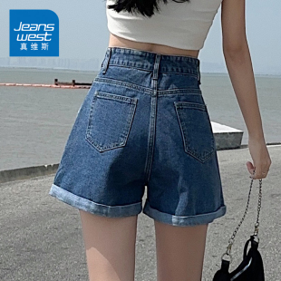 宽松卷边A字学生休闲超短热裤 薄款 子 女夏季 KZH真维斯高腰牛仔短裤