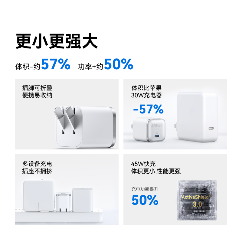 Anker安克安心充Pro氮化镓17充电器适用45W苹果16Pro35WiPhoneProMax充电头快充15plus套装 iPhone17首选