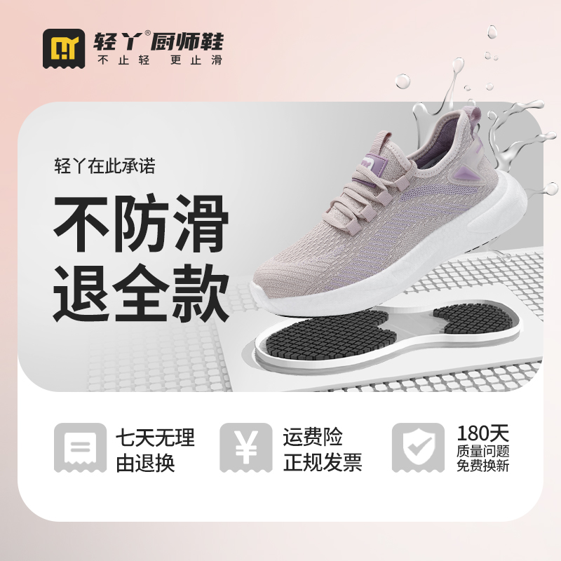 轻丫厨师鞋 士防水防油防滑厨房轻便透气食堂厚底增高餐饮粉色 女款