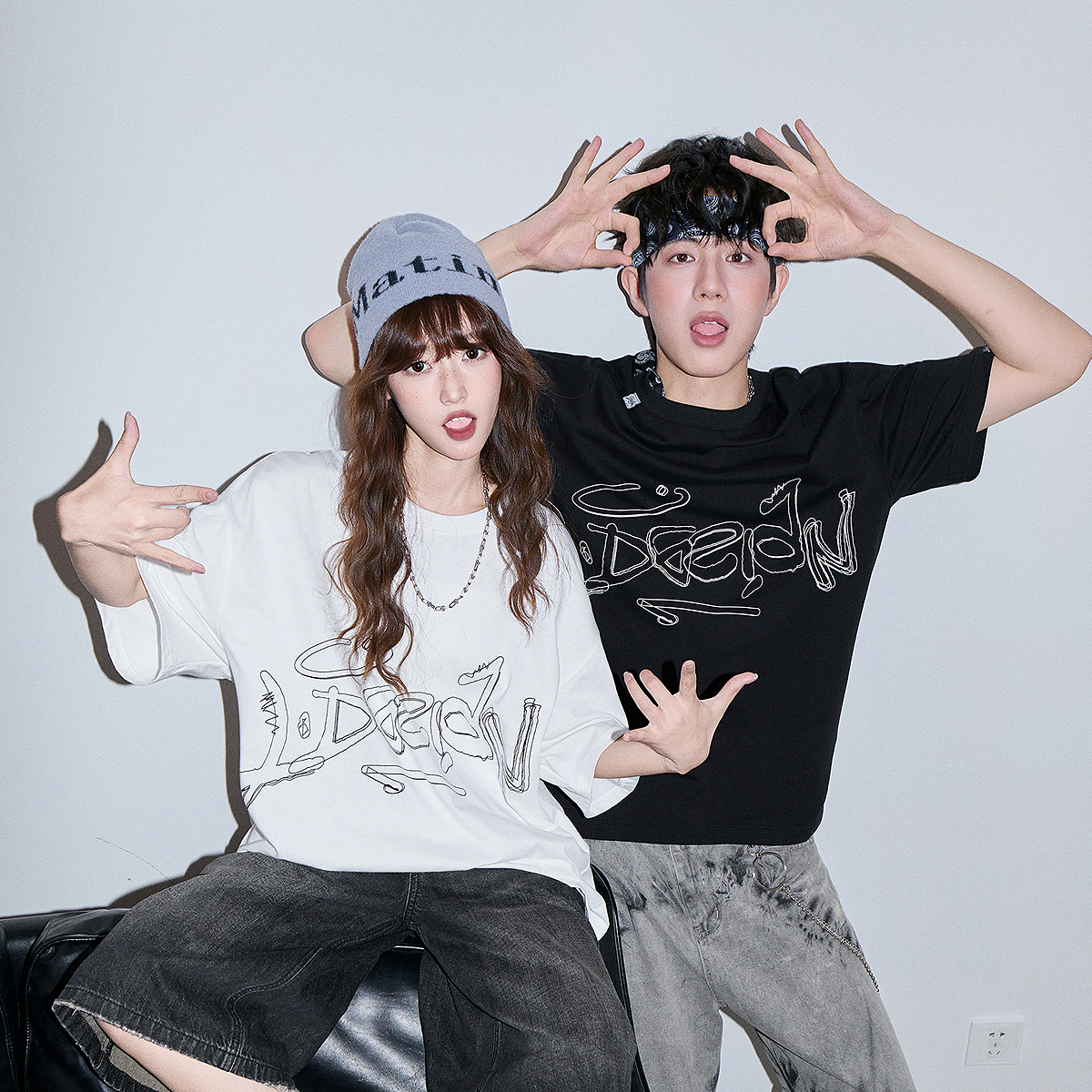 T恤男潮流字母印花宽松圆领上衣打底衫 情侣短袖 新款 唐狮2025夏季