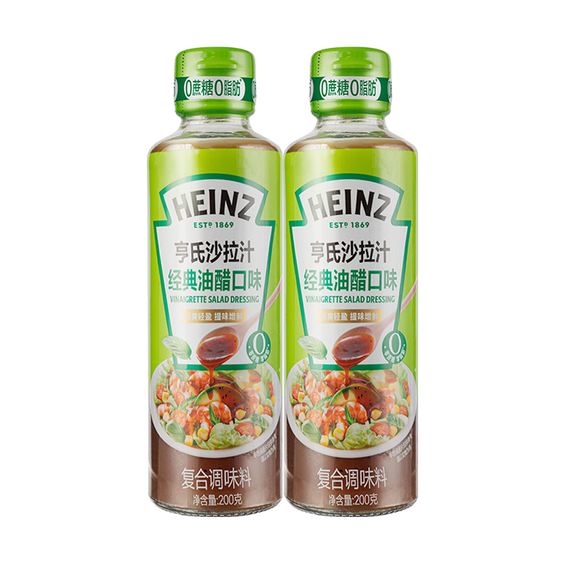 亨氏经典 健身轻食蔬菜水果0蔗糖色拉调味 油醋口味沙拉汁200g瓶装