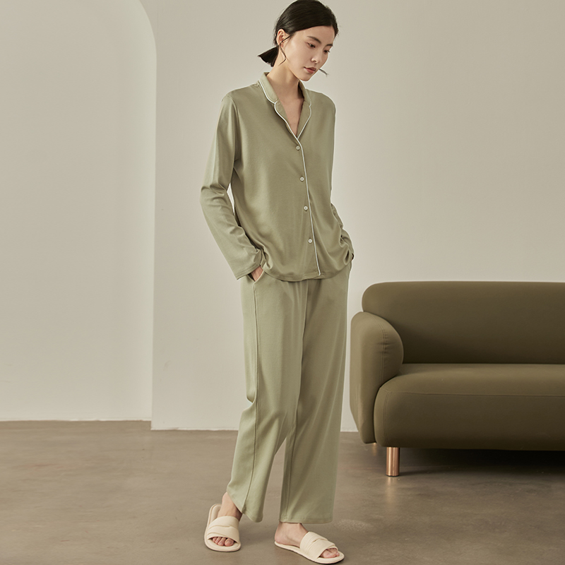 时尚 柔软莫代尔棉大码 开衫 套装 家居服 长袖 贝妍高级感睡衣女春秋季