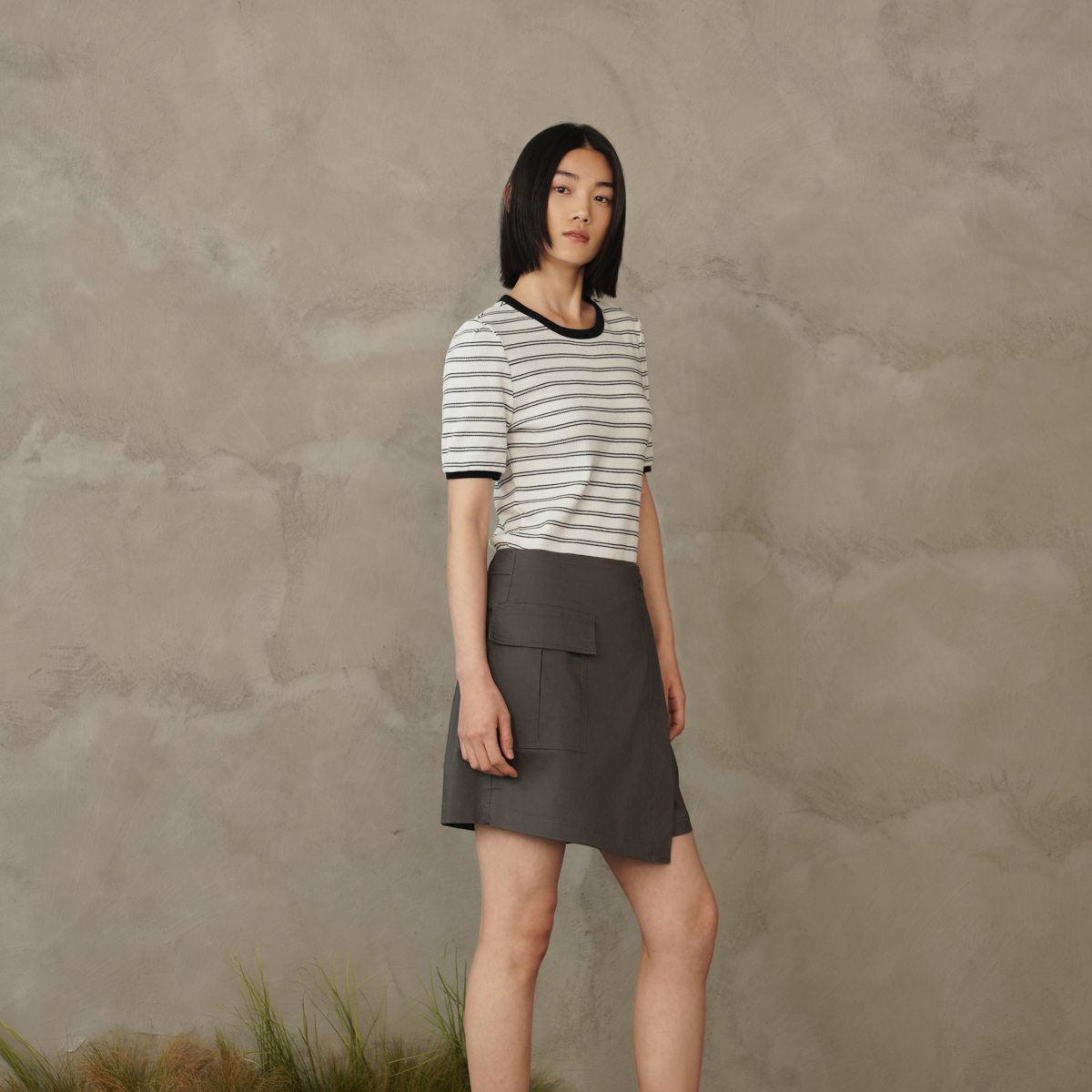 热卖 T恤海澜优选夏季 气质舒适透气女短袖 复古棉条纹褶袖