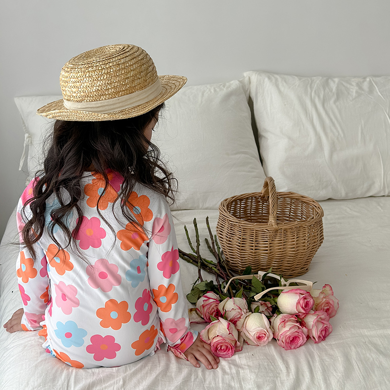 中小童宝宝可爱花朵速干游泳衣 儿童防晒泳装 新款 女童泳衣连体长袖