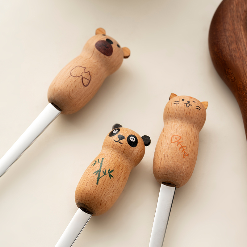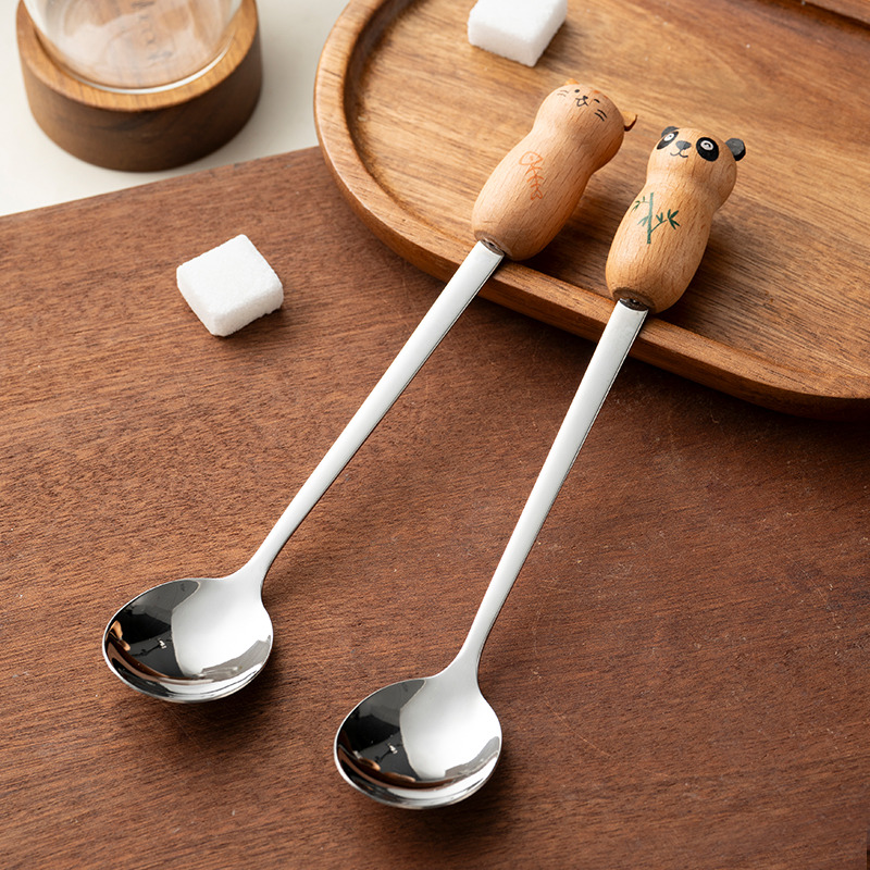 onlycook可爱小熊儿童勺子食品级304不锈钢长柄甜品咖啡勺搅拌棒