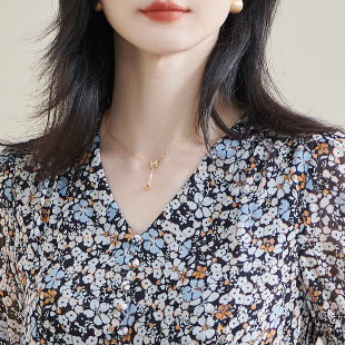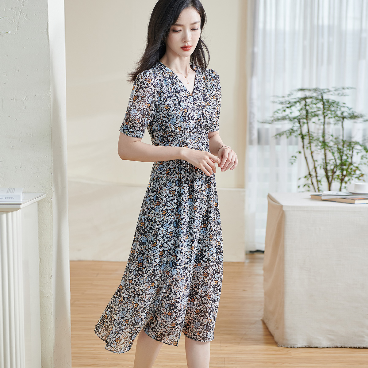A字裙1032 知性优雅气质连衣裙碎花设计泡泡袖 米思阳2025夏季 新款