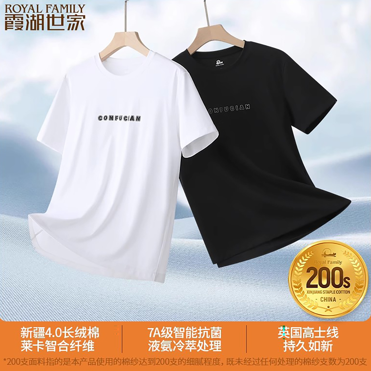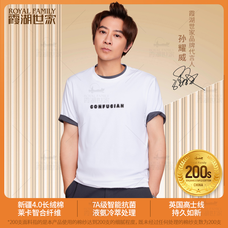 抑菌防蚊凉感圆领短袖 霞湖世家200支印花t恤男夏季 Y017 孔夫版
