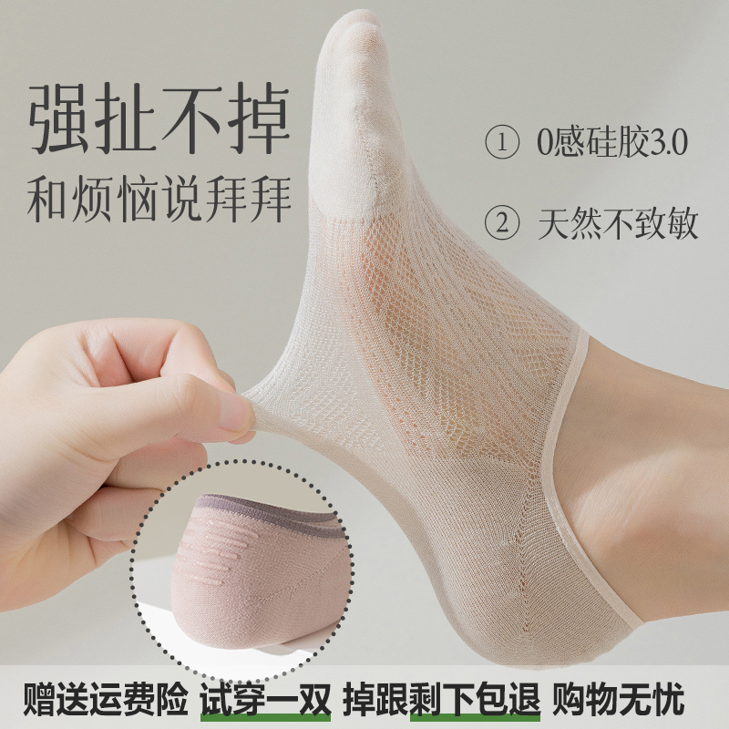 超薄网眼纯色女士船袜子莫代尔透气不掉根休闲隐形袜春夏防臭短袜