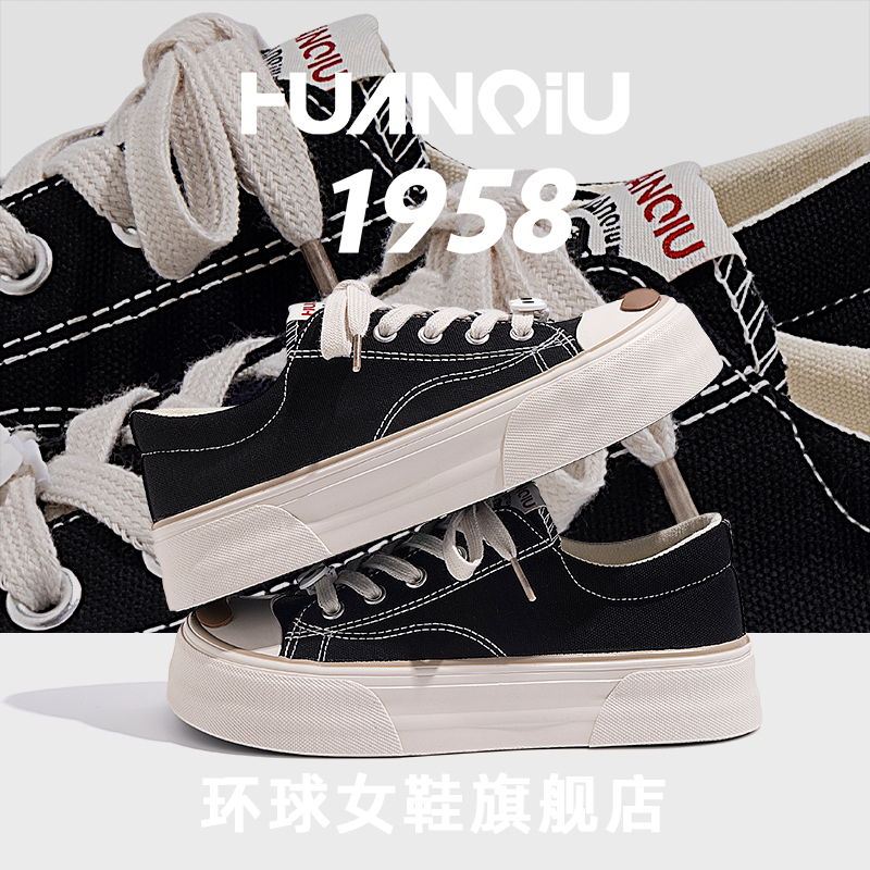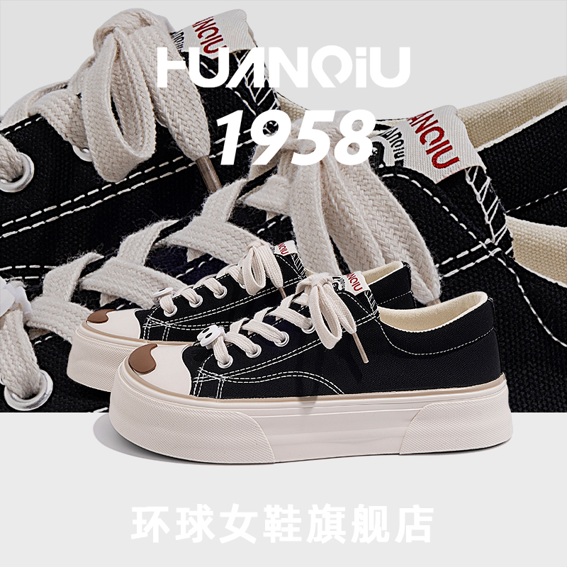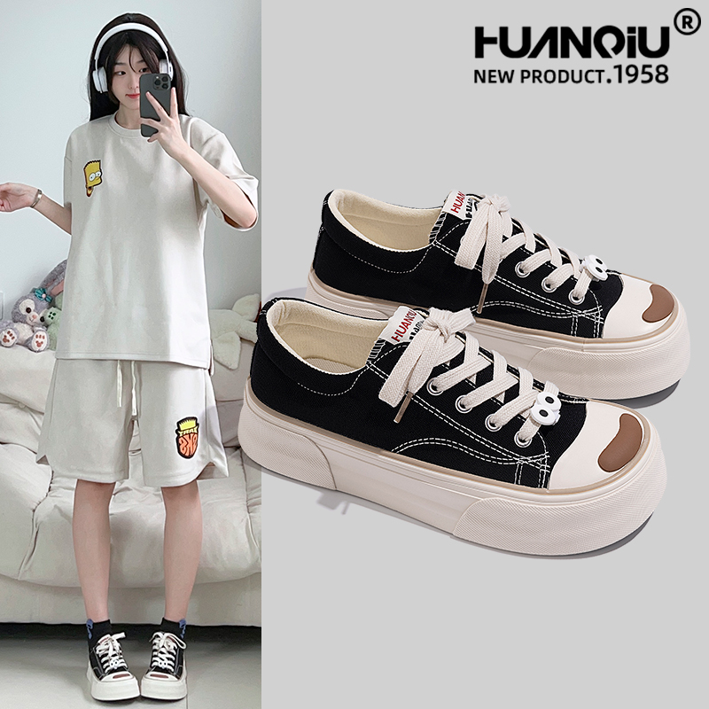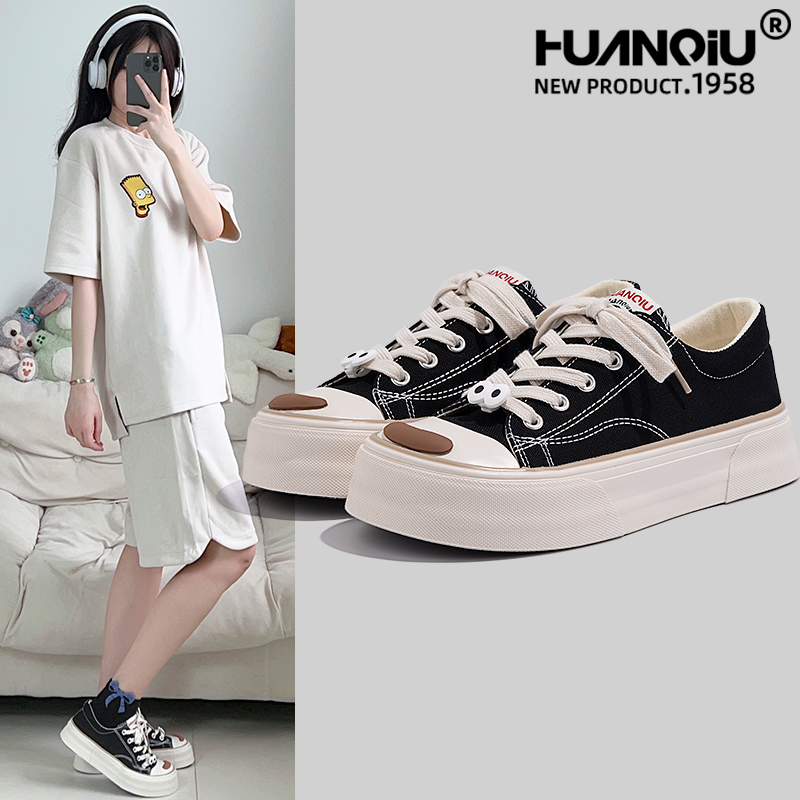 子女百搭小众丑萌厚底板鞋 环球黑色帆布鞋 芒果头鞋 2025新款 女秋季
