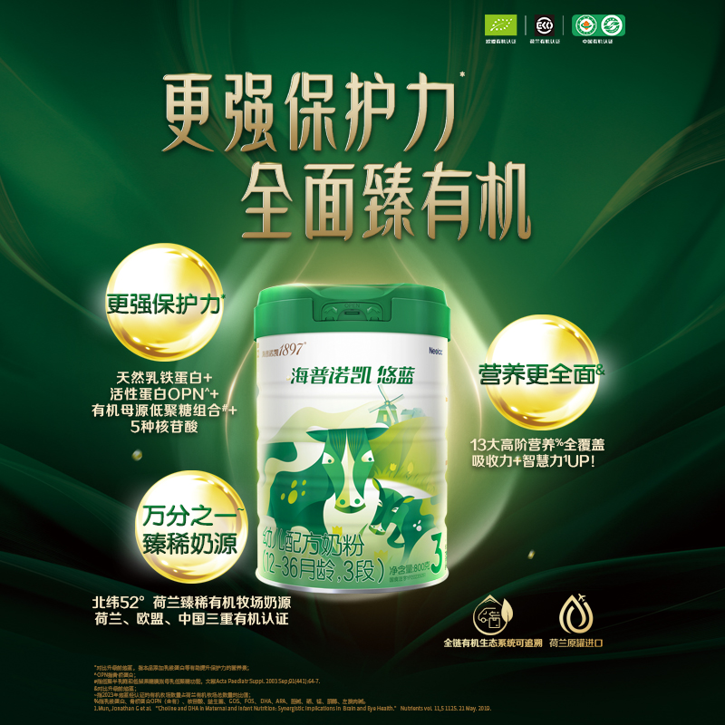 海普诺凯悠蓝幼儿有机配方奶粉3段12 6罐乳铁蛋白奶粉 36月龄800g