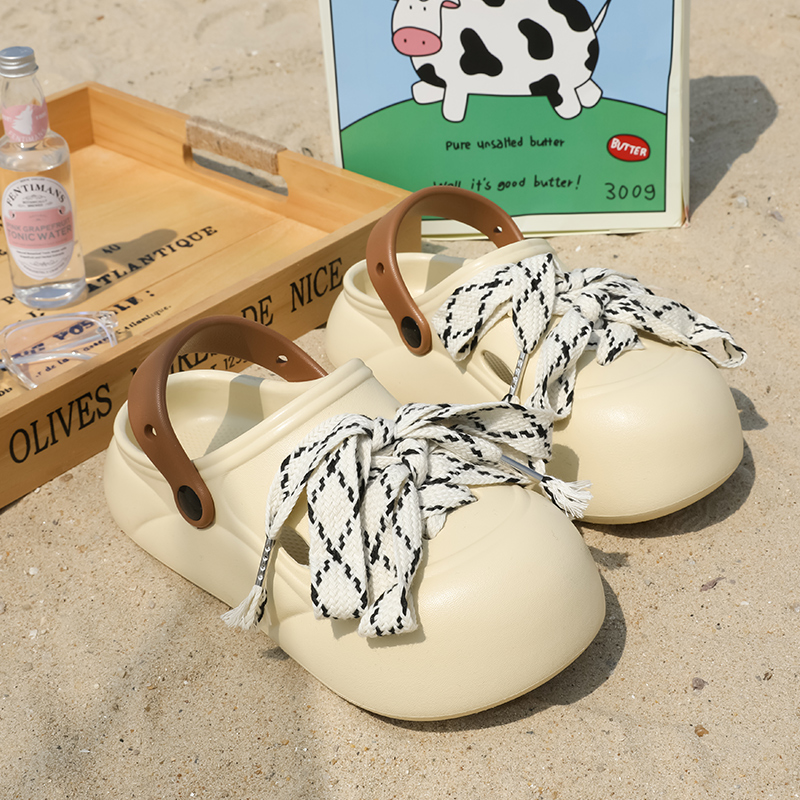 夏季 女款 外穿2024新款 沙滩凉鞋 女 绑鞋 厚底增高包头凉拖鞋 带洞洞鞋