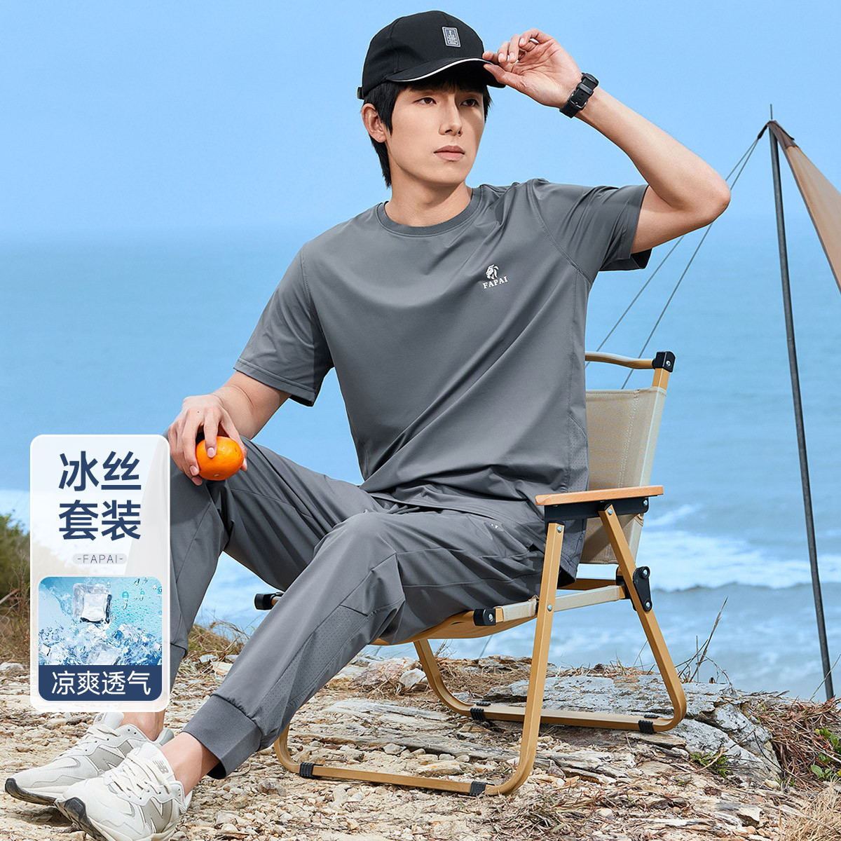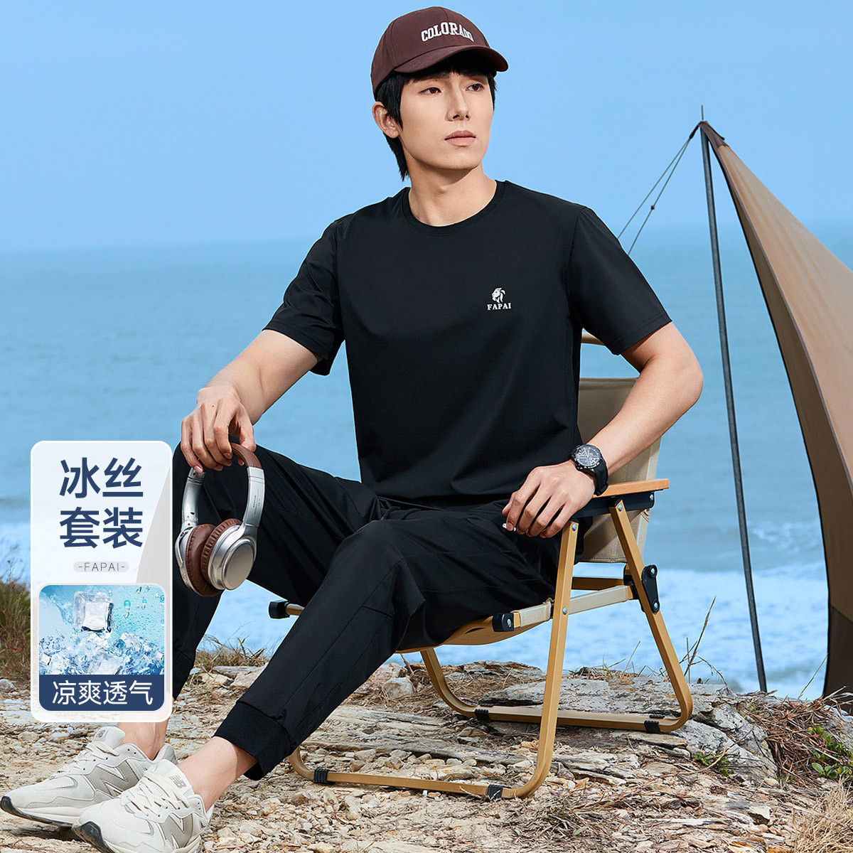 夏季 男士 运动套装 束脚长裤 薄T恤两件套 法派 休闲短袖 冰爽速干