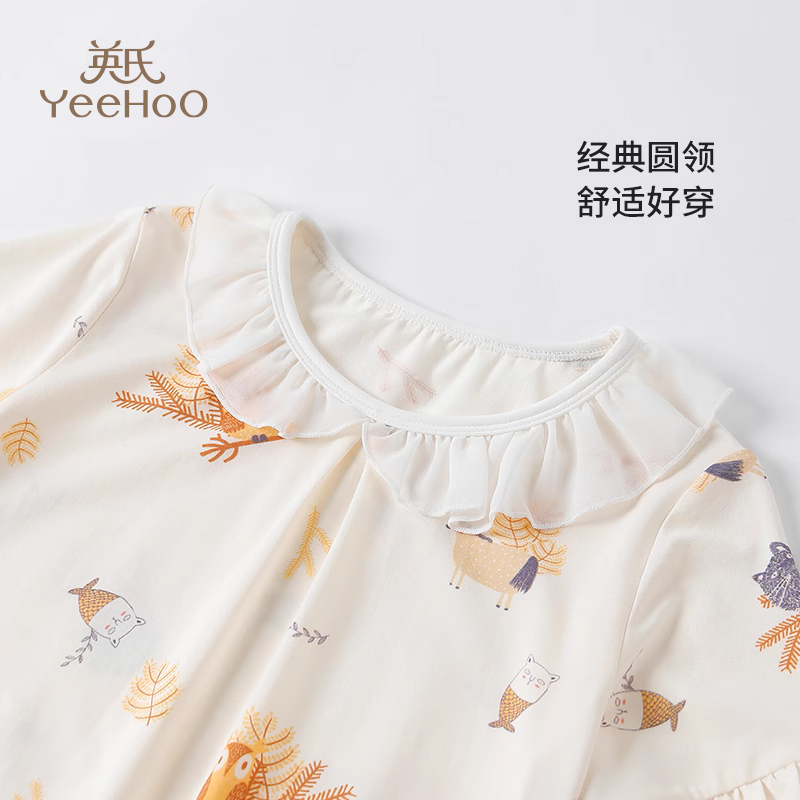 中大童女孩公主风睡裙2025春新款 英氏儿童睡衣女童家居服夏季 薄款