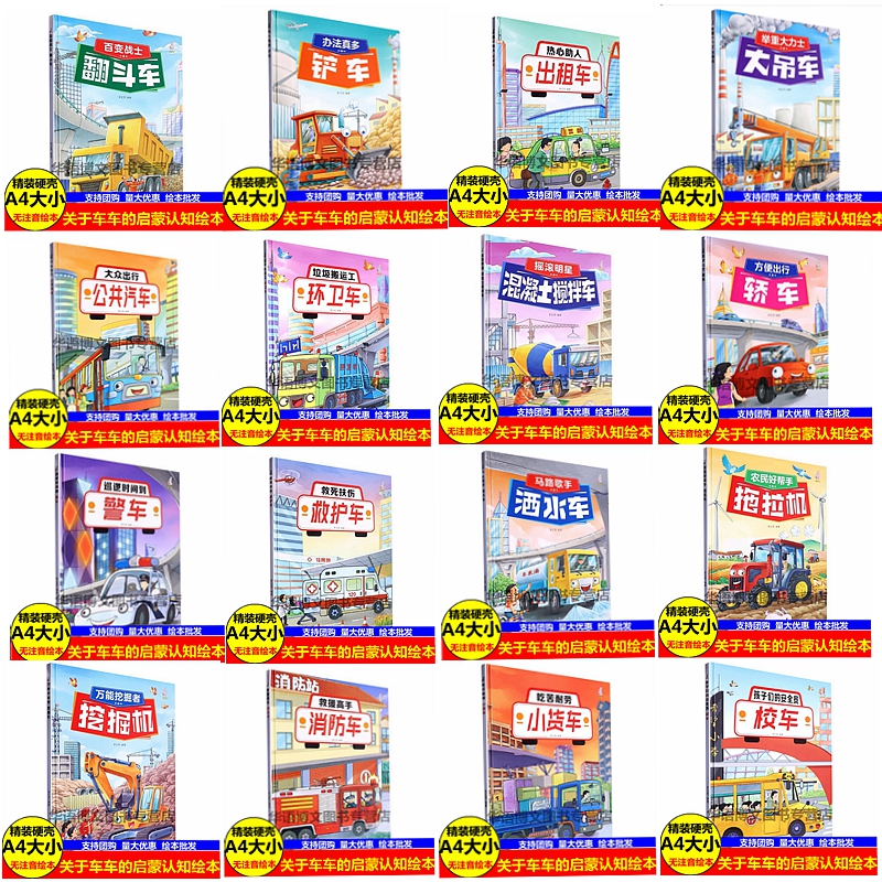 绘本 大吊车出租车警车消防车铲车幼儿园硬壳硬皮精装 小学生课外阅读书籍 关于车车 8岁幼儿童科普知识图画书 认知绘本