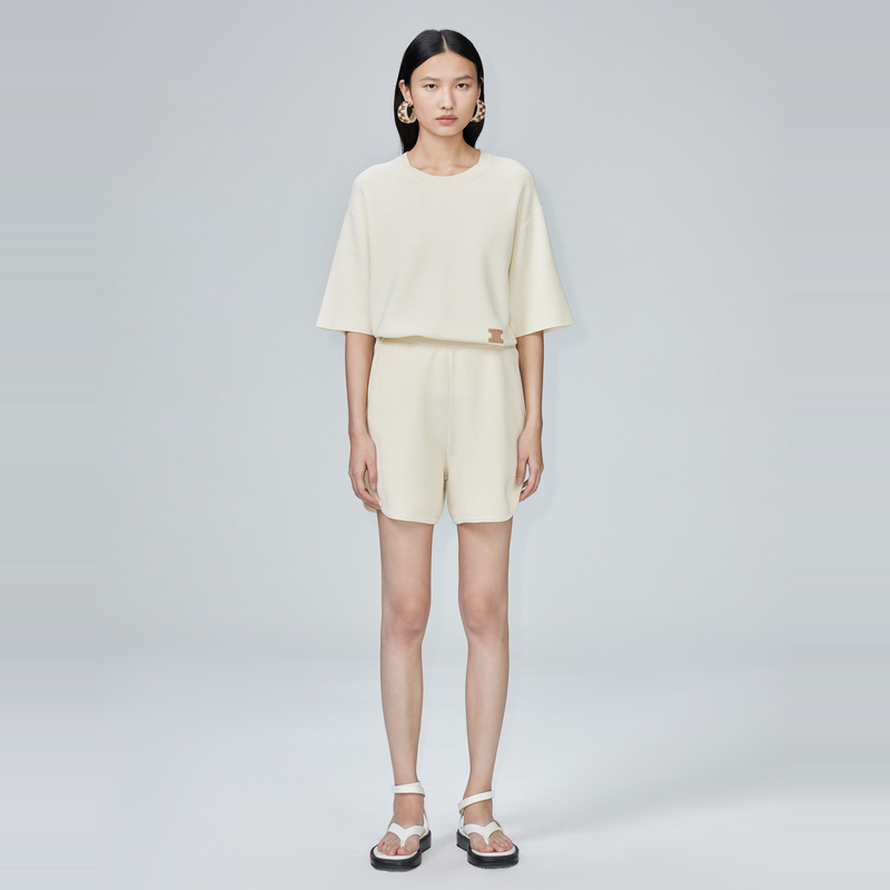 夏 纯色简约百搭休闲裤 IMM尹默女装 天丝棉高腰阔腿针织短裤