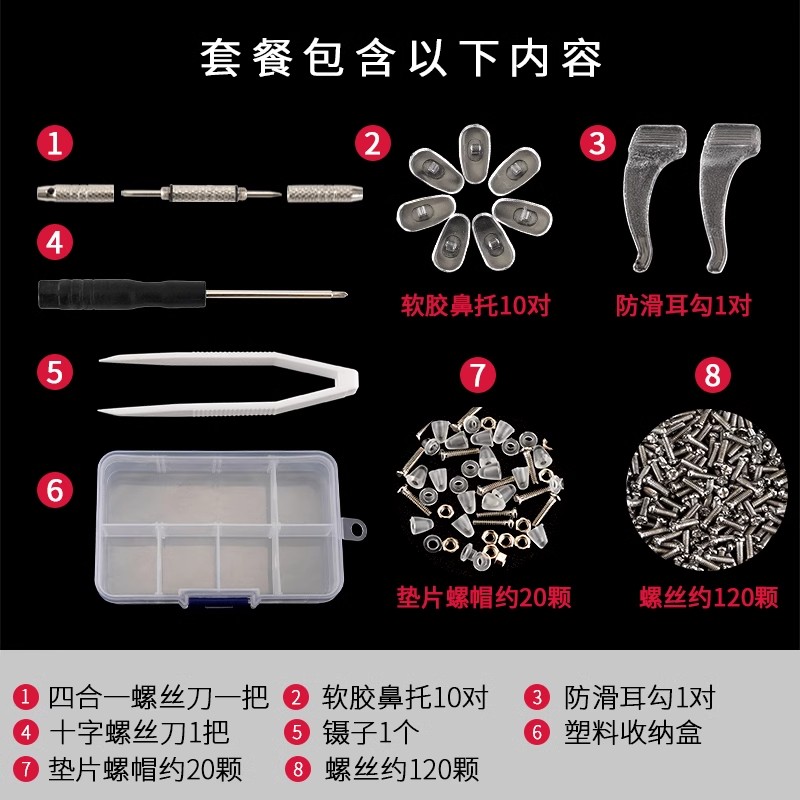 近视眼镜鼻托架镜框镜腿小螺丝套装 眼镜配件零件包 维修螺丝套装