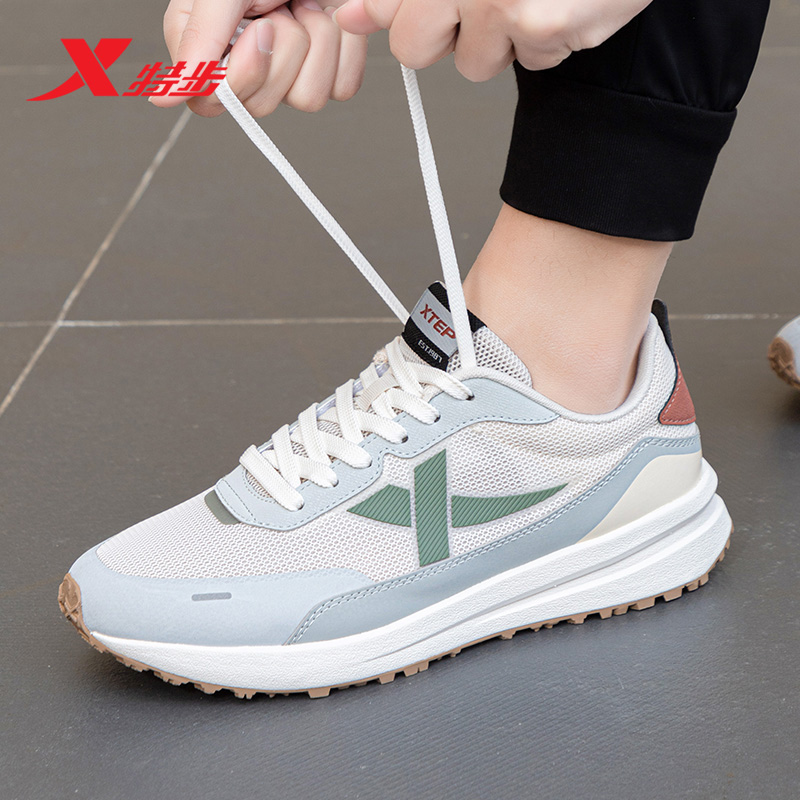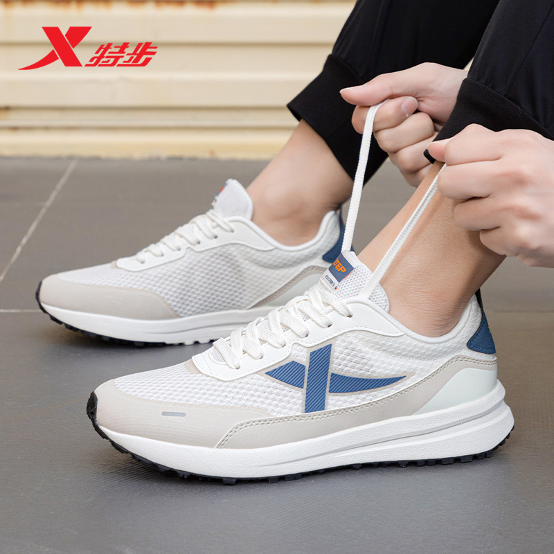 网鞋 秋季 透气轻便男士 特步男鞋 子旅游鞋 男款 休闲鞋 男 复古休闲鞋