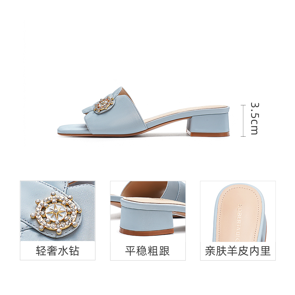 时尚 诺贝达女夏时装 女凉拖鞋 舒适粗跟一字拖鞋 方跟RM247007 拖鞋