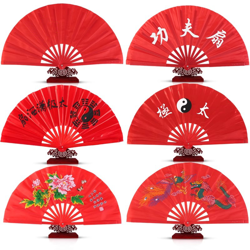 功夫扇太极扇红扇子中国风响扇红色儿童双面折扇说书人武术表演扇