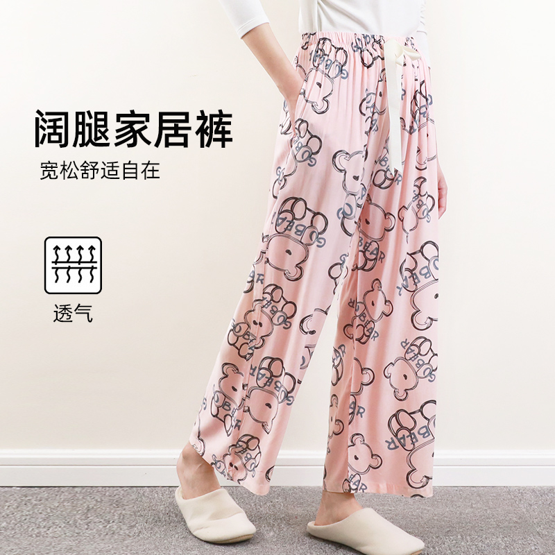 家居可外穿显腿长印花家居裤 熳洁儿女士家居裤 阔腿舒适宽松休闲裤