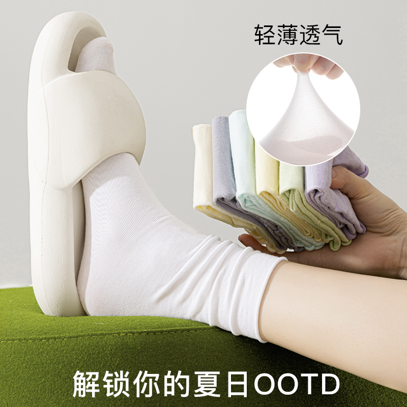 2025新款 女堆堆袜凉感配小皮鞋 爆中筒冰丝袜夏天 薄款 冰冰袜子夏季