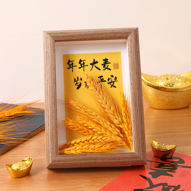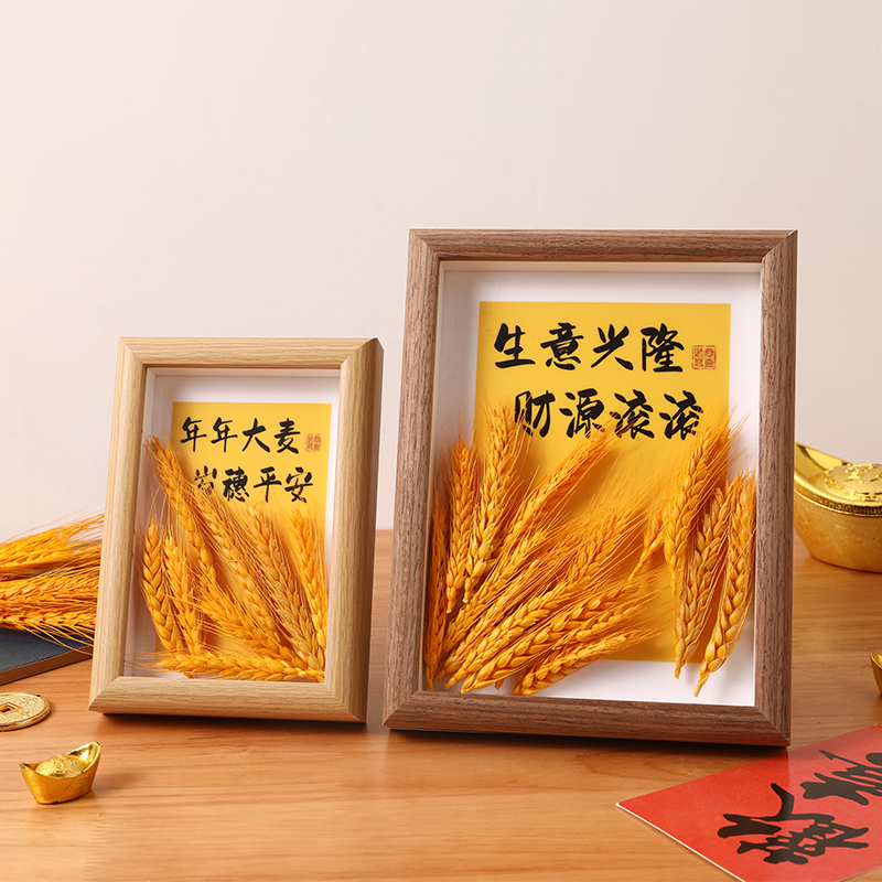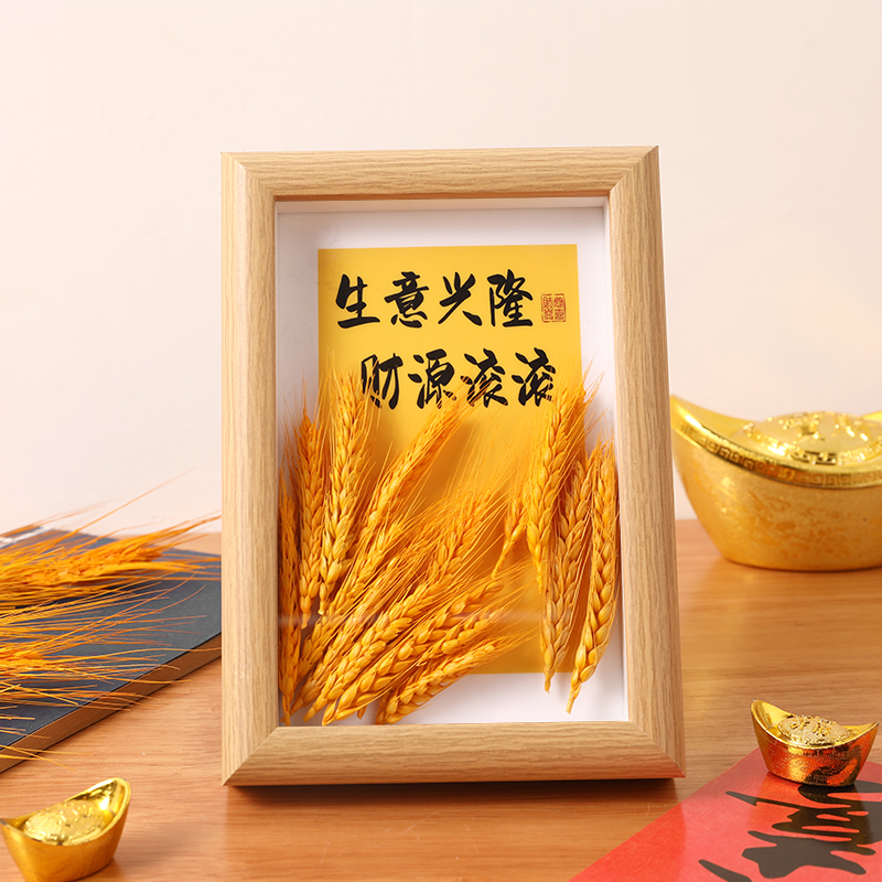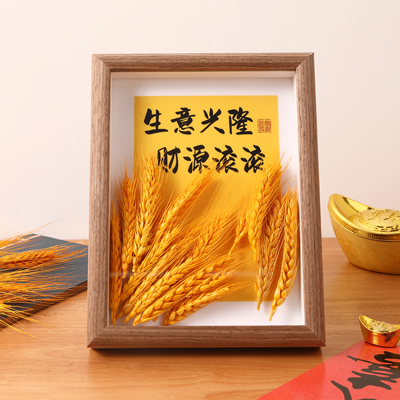雨痕麦穗相框摆件开店开业天然黄金大麦周年气氛布置礼物装 饰挂墙