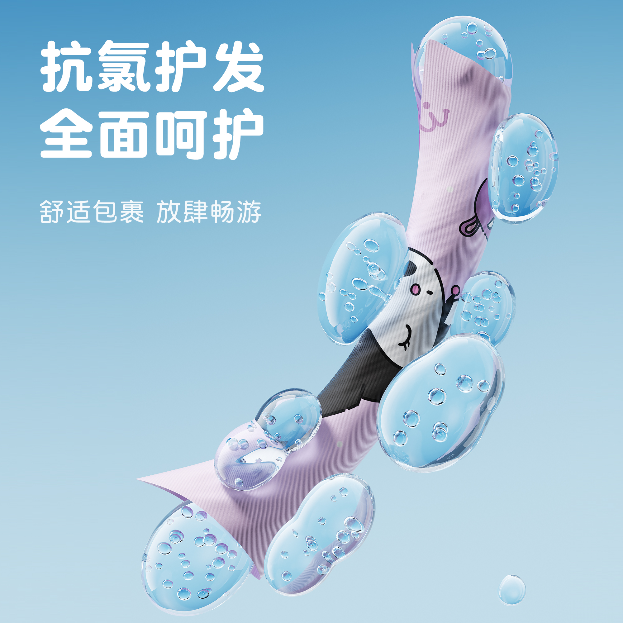 库酷洛米儿童泳帽女童不勒头长发加大护耳布帽可爱游泳帽泳镜套装