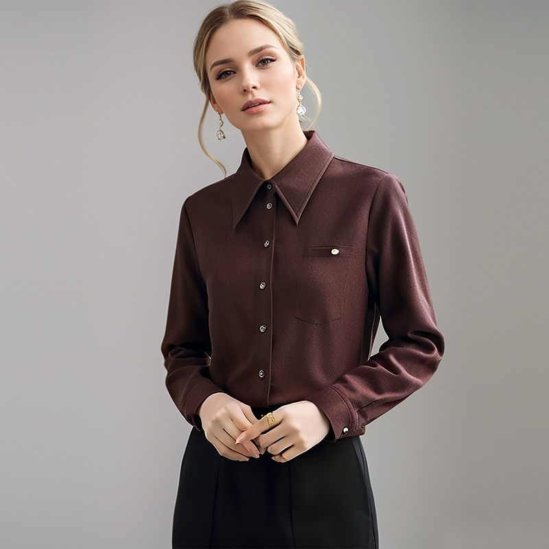 小香风格 男长袖 纹提花休闲翻领宽松衬衣509915 衬衫 三福2025冬季