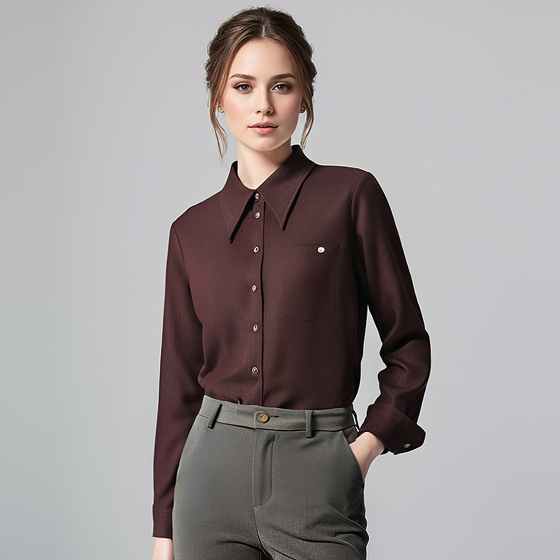 按扣长袖 女25秋季 德玛纳复古风翻领牛仔衬衫 上衣 蜜蜂欢乐社