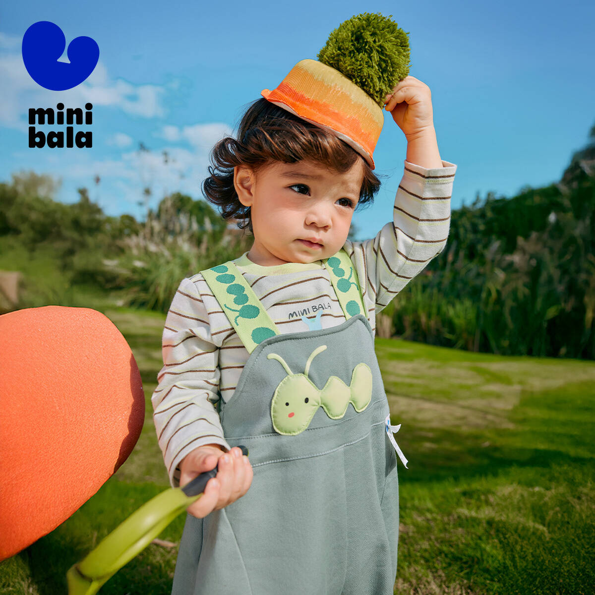 迷你巴拉巴拉背带裤 男童女童宝宝吸湿速干萌趣T恤两件套 套装
