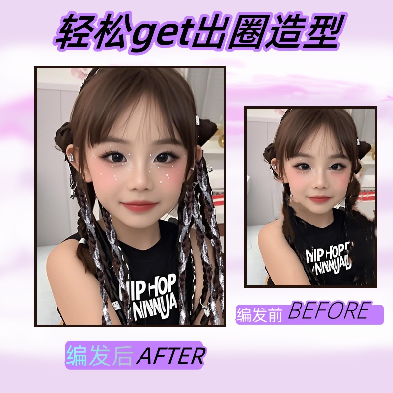 脏辫发绳女童爵士舞银色发饰甜酷编发绳儿童街舞演出朋克嘻哈头饰