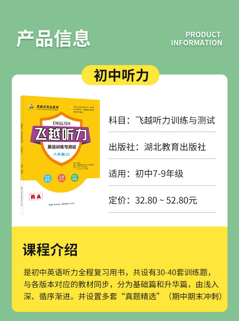 专项阅读基础版 武汉荆州河北江西安徽福建广西仁爱科普版 本 七八年级上下册78年级专版 张鑫友飞越听力初中英语训练与测试人教版