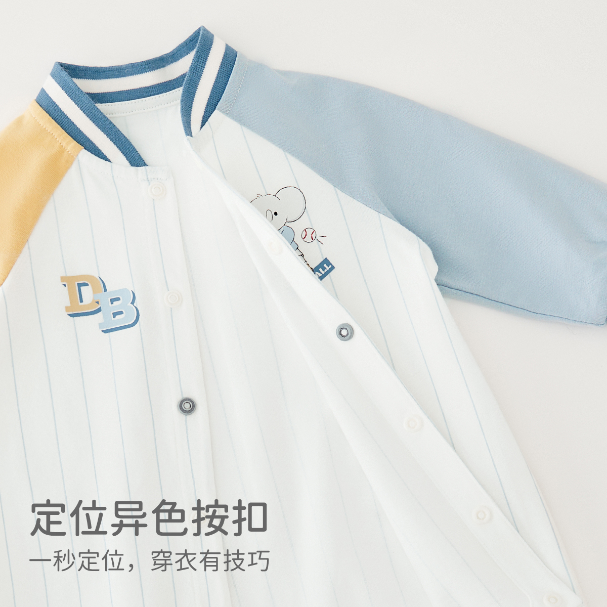 戴维贝拉新生儿爬服2025春装 婴儿男宝宝5A抗菌防螨纯棉连体衣 新款