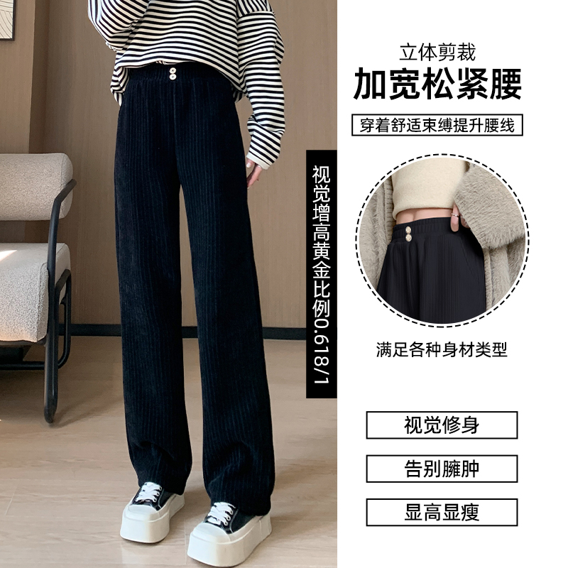 雪尼尔直筒裤 one 2025新款 子女早秋韩系穿搭女装 more白色阔腿裤