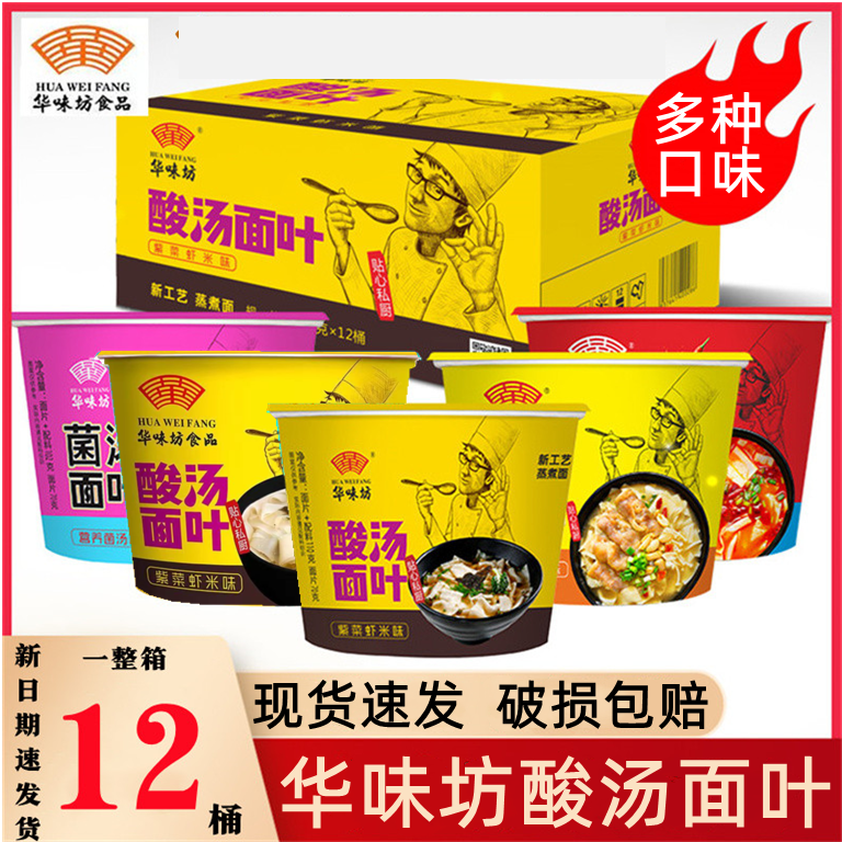 华味坊酸汤面叶桶装 方便面泡面速食刀削面紫菜酸汤面片非油炸整箱