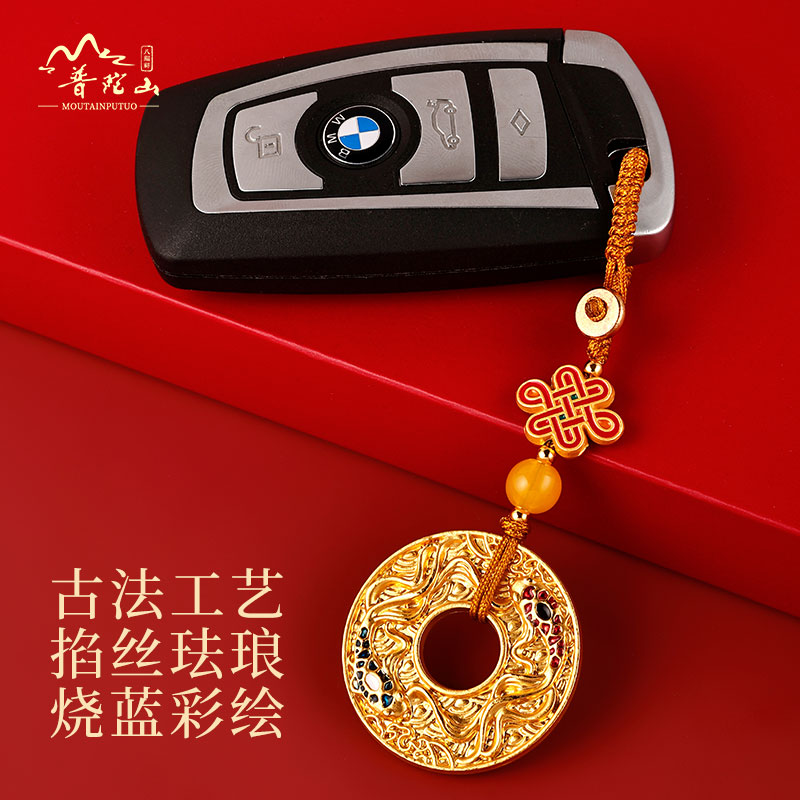 普陀山平安扣钥匙扣挂件沙金连年有余男高档汽车钥匙挂件包包挂饰