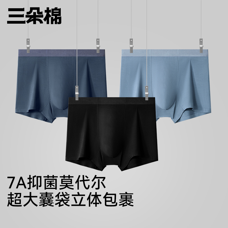 冰丝透气四角短裤 3件 莫代尔大码 平角内裤 男生 蕉内银皮500E男士