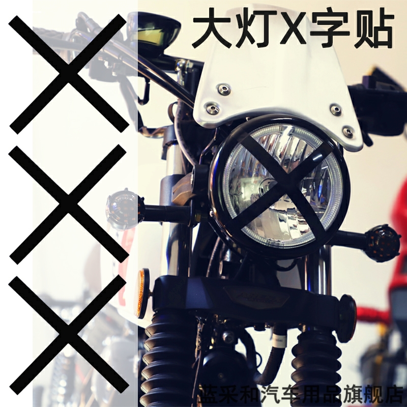 摩托车装 条形贴花 饰车身贴复古大灯贴x字形6寸圆灯贴划痕遮挡个性
