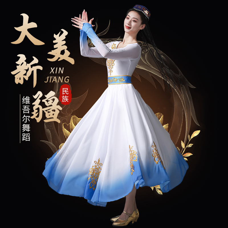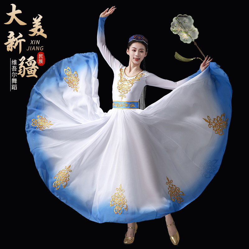 少数民族服饰维族舞蹈演出服女新疆维吾尔族成人艺考大摆裙练功服