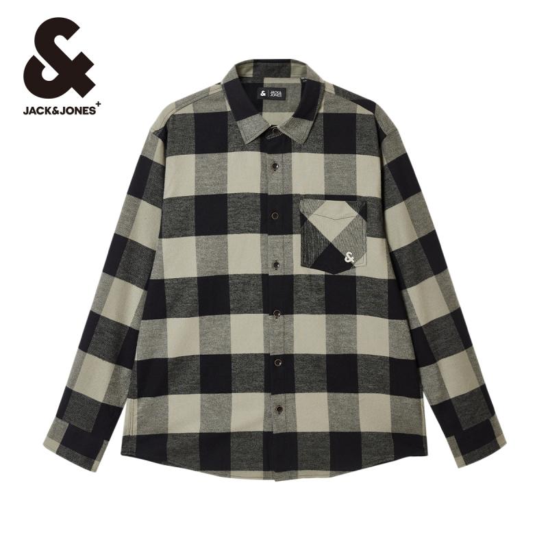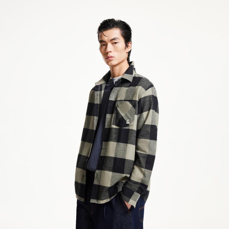 男款 班尼路S&K系列法兰绒衬衫 蓝色格子衫 新款 复古衬衣潮LF 男秋季