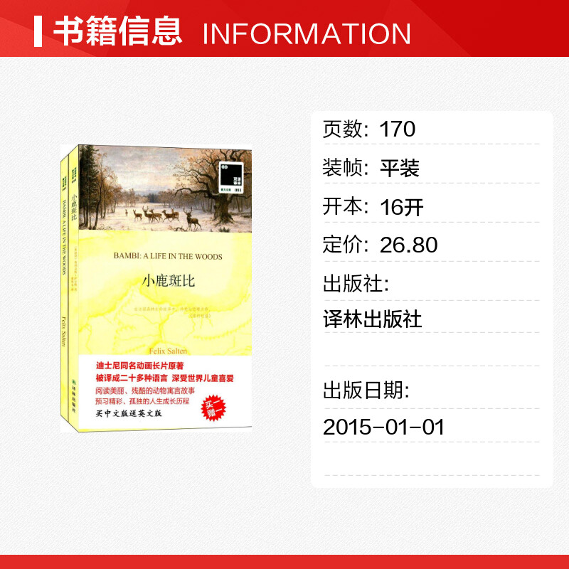 无删减英汉对照英文原版 小鹿斑比 世界名著外国经典 小说课外阅读书目新华书店旗舰店译林出版 书籍 社正版 中英双语
