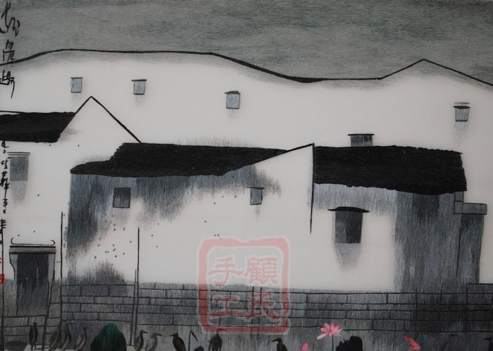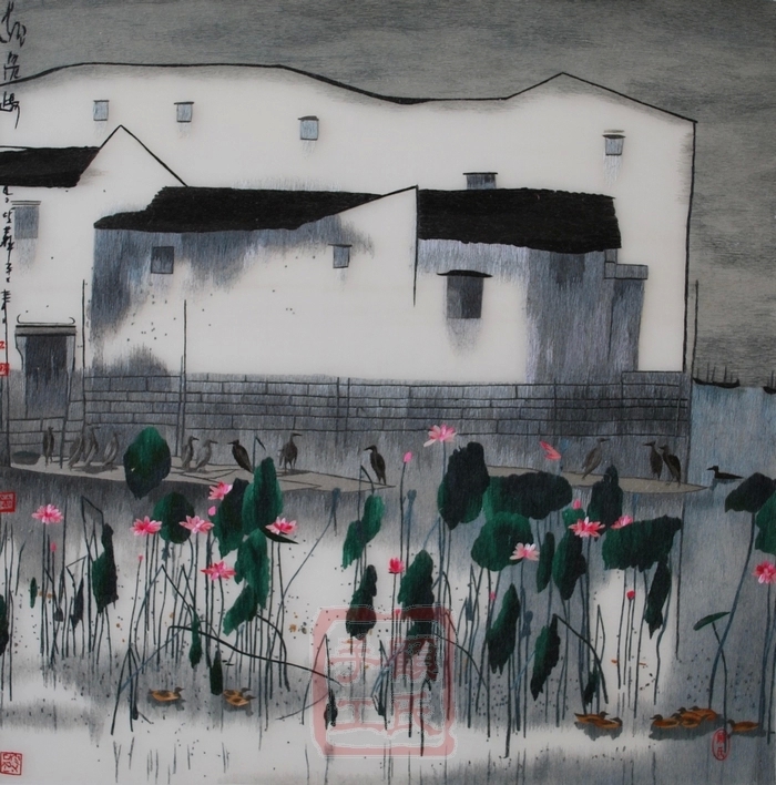 流水 4丝工艺小桥 人家 85苏绣江南水乡风景
