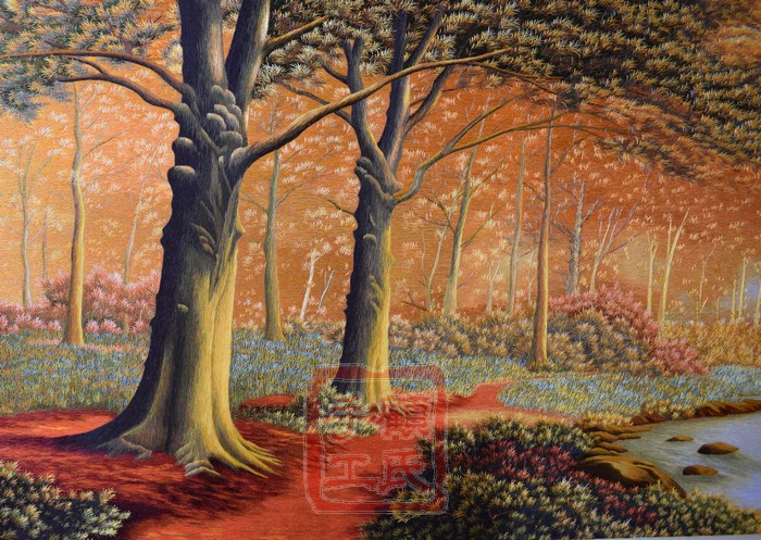 苏绣金秋 秋色风景 105 205顾氏苏绣乱针绣树木风景