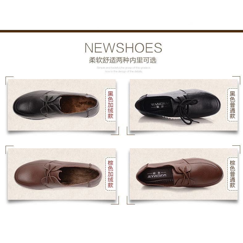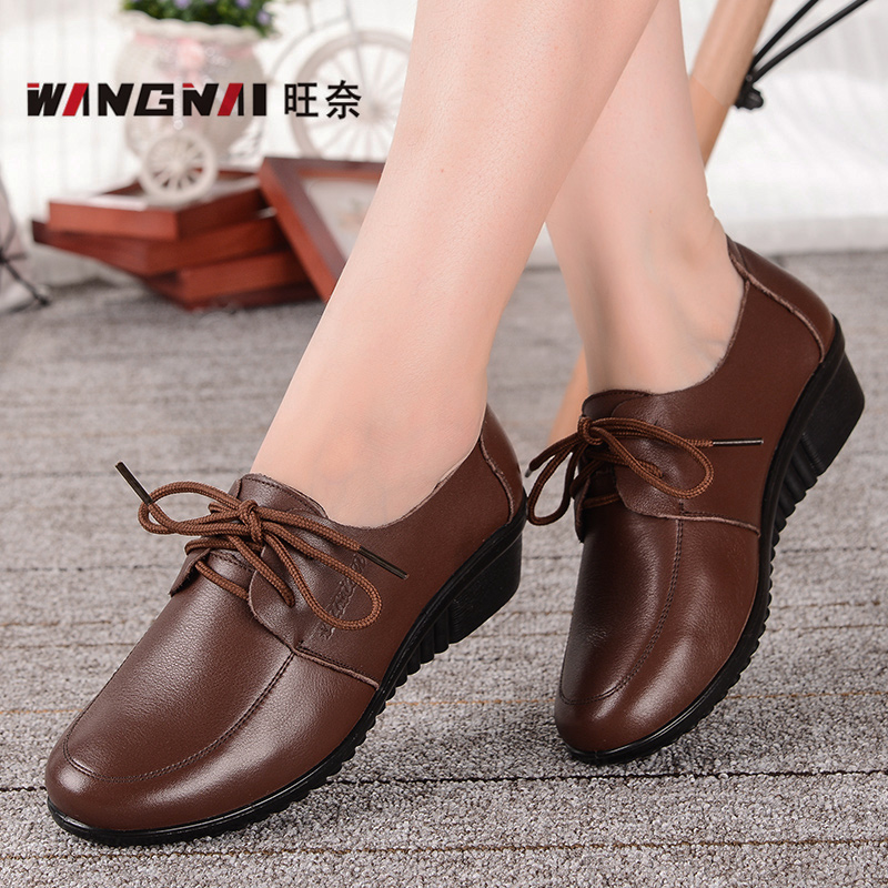 女坡跟舒适系带皮鞋 43大码 春秋款 旺奈妈妈鞋 女鞋 真皮软底单鞋