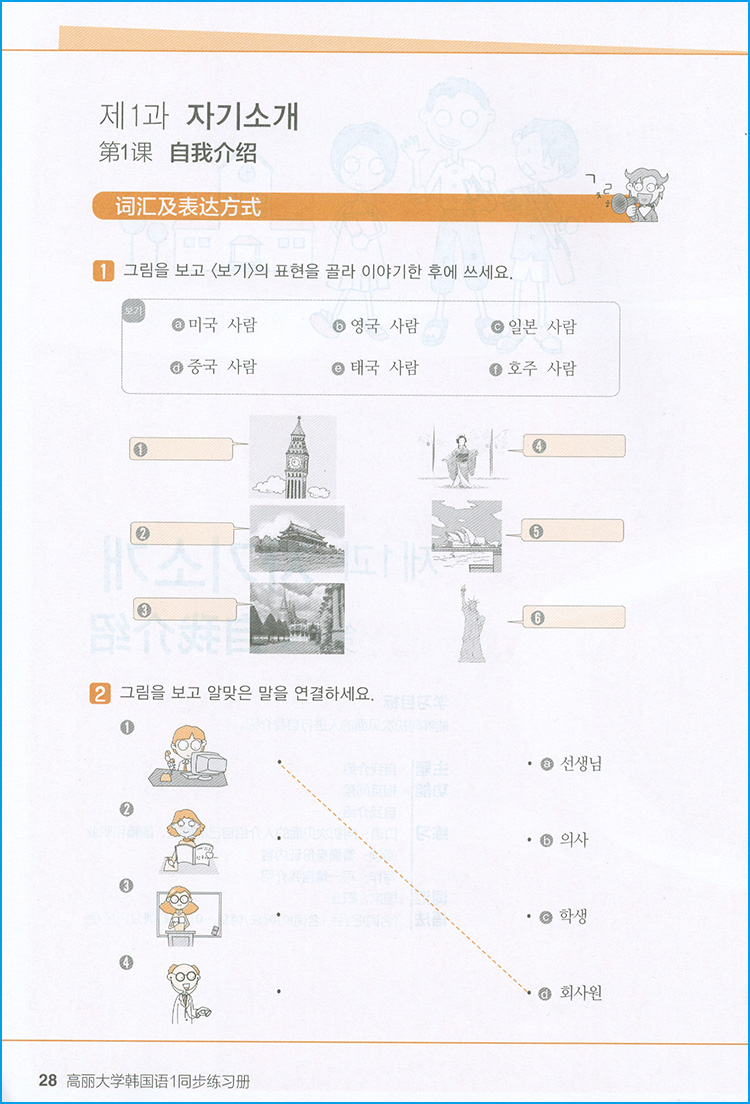 韩语自学入门教材高丽大学韩国语同步练习册1第一册外语教学与研究出版 社高等学校朝鲜语习题集训练韩语自学辅助教材书籍
