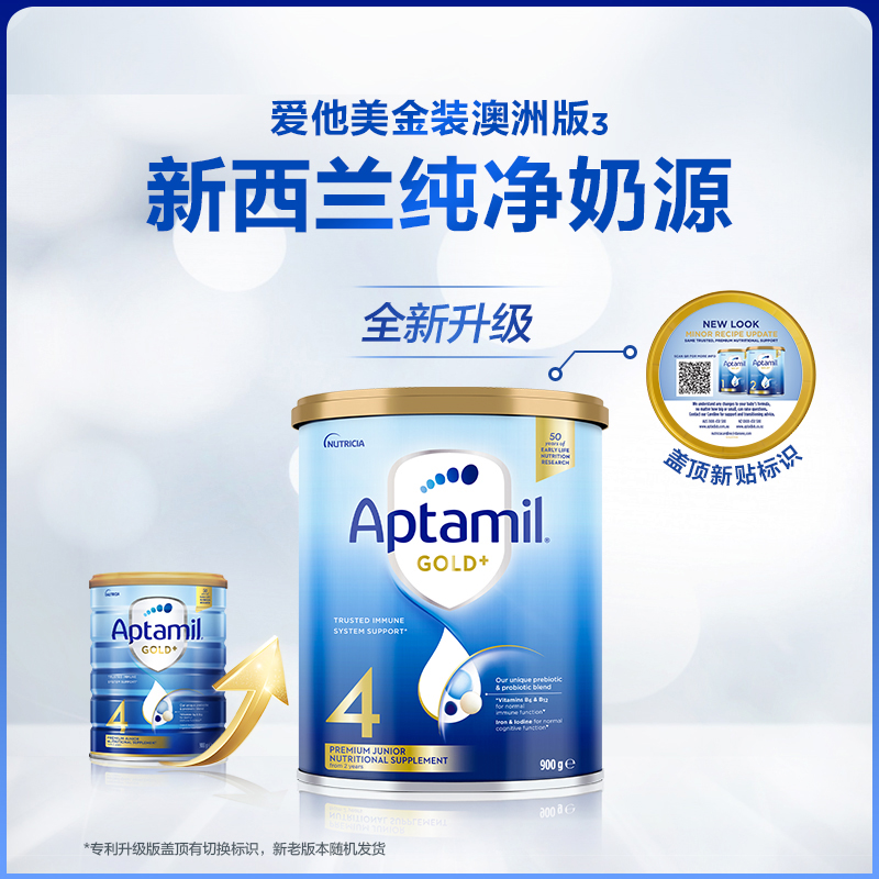 较大婴儿配方奶粉4段 新西兰爱他美aptamil进口金装 3罐装 自营