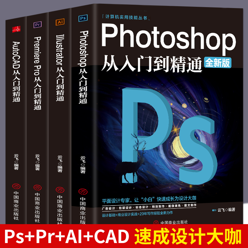 illustrator 全4册 Adobe PremierePro AutoCAD从入门到精通视频剪辑调色人像修图淘宝美工平面设计 计算机实用技能丛书photoshop