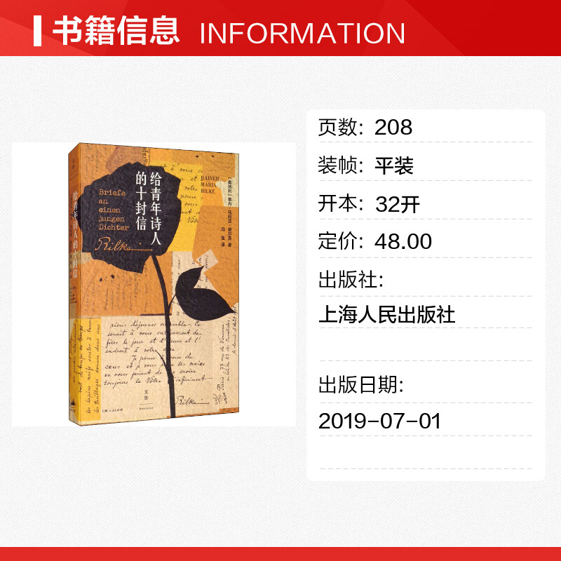 图书籍 社 莱内·马利亚·里尔克 译 外国小说文学 冯至 奥 著 上海人民出版 给青年诗人 新华书店正版 十封信
