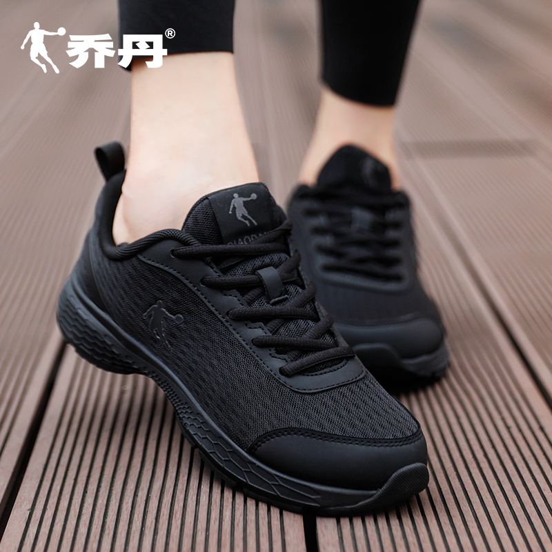 女鞋 子黑色女士跑步鞋 网面透气秋季 官方轻便休闲鞋 新款 乔丹运动鞋